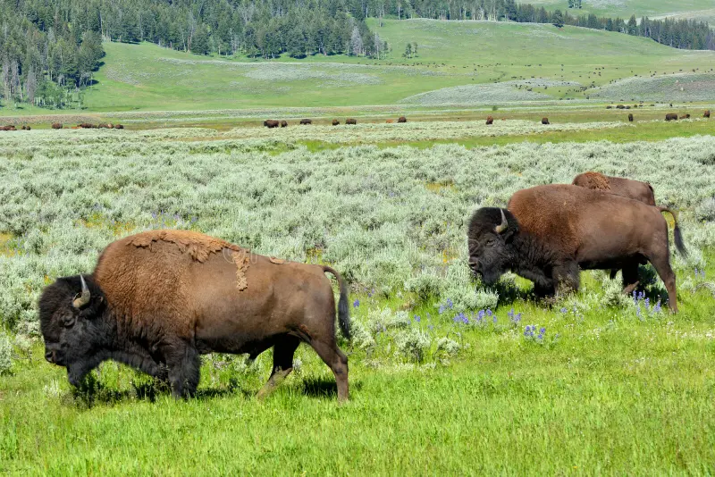 Bison grazing, Yellowstone National Park, Wyoming, USA