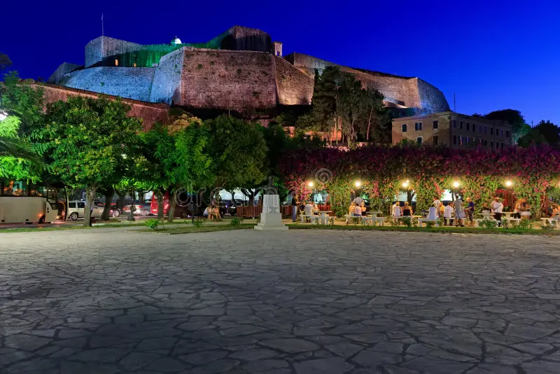Hoy admiramos la impresionante belleza de Corfú de noche en Grecia, con calles del casco antiguo suavemente iluminadas y un puerto que reúne paseantes, barcas y terrazas animadas. Los cafés suenan con voces y música, las plazas respiran una brisa ligera y la iluminación resalta arcos, balcones y piedra. El ambiente es sereno y vibrante a la vez, ideal para caminar sin prisas, probar un helado y tomar algo junto al mar.