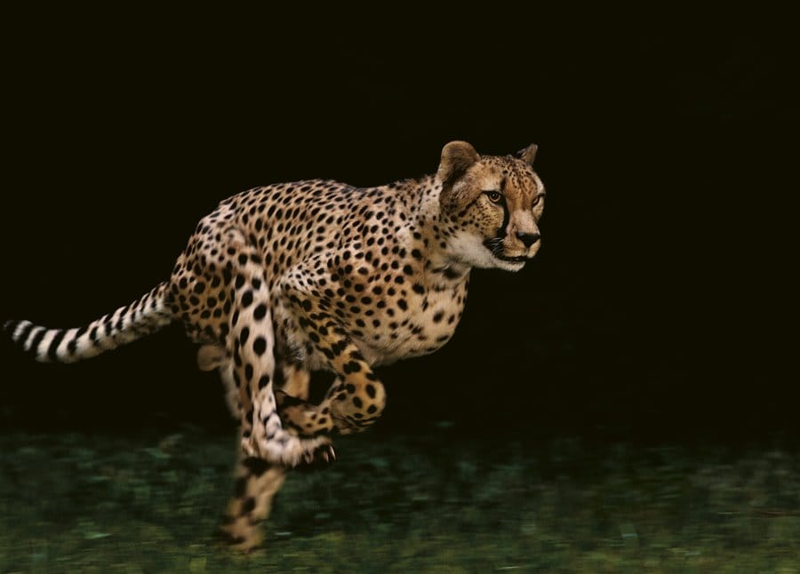 In the Maasai Mara National Reserve in southwestern Kenya, a cheetah looks out over the savannah from the top of a termite mound. Its agile body can reach more than 100 km/h, making it the fastest land mammal on the planet. Its long legs, flexible spine, and strong tail allow it to move with precision and balance during hunting.