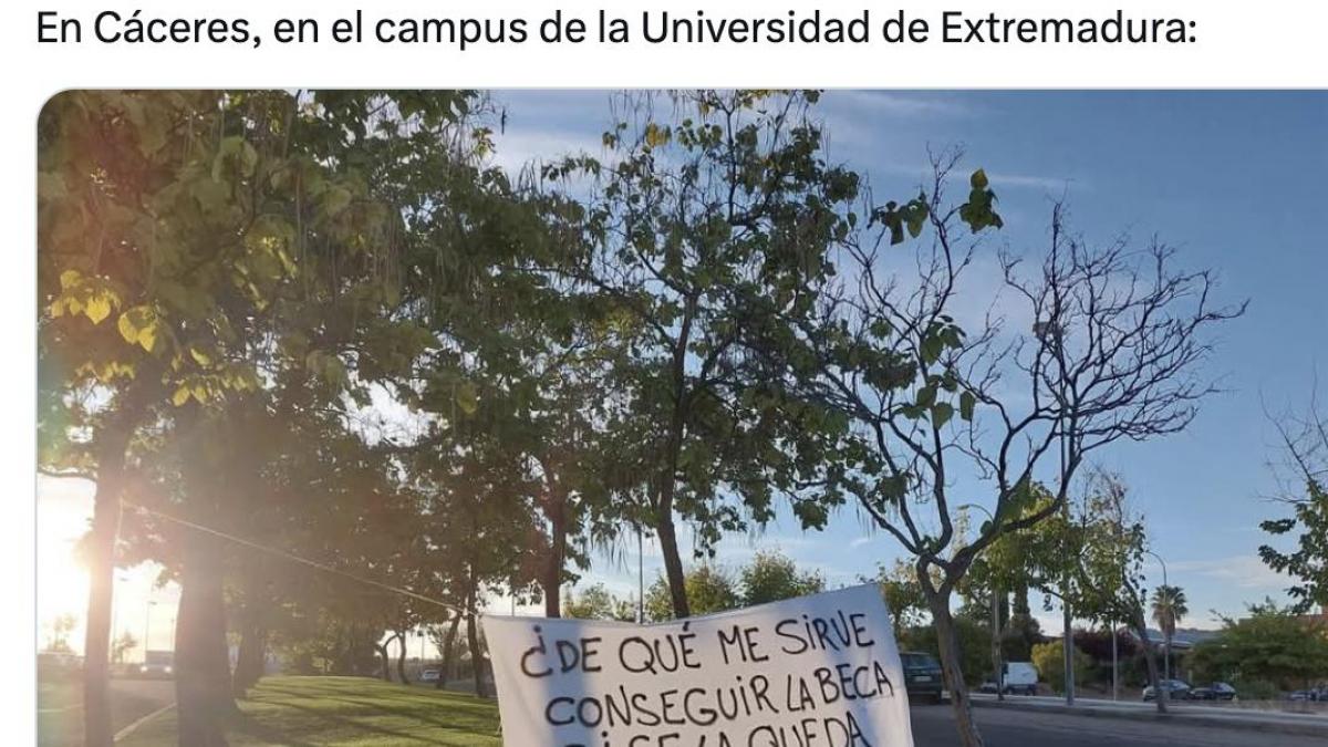 La pancarta que ha aparecido en la Universidad de Extremadura es para exponerla en el ministerio de Vivienda