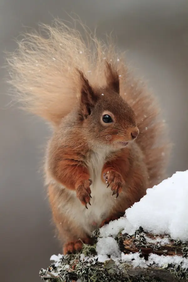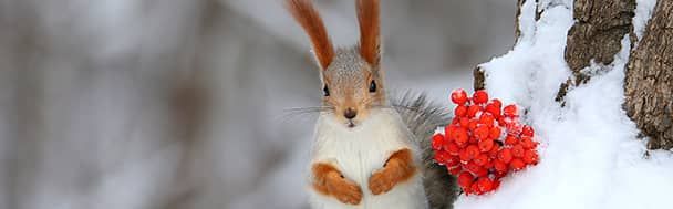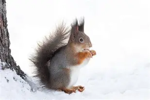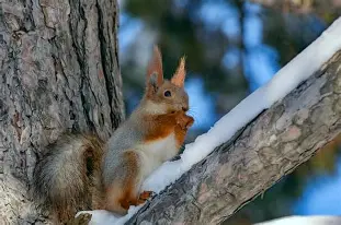 Today's image portrays a Eurasian red squirrel perched on snow. Its denser winter fur and tufted ears make it one of the most striking species in our forests. The red squirrel is native to the forests of Europe and large areas of Asia, where it feeds mainly on seeds, nuts and fungi. To face the winter, it hides food in different places and builds nests high in hollow trees, well protected from the cold.