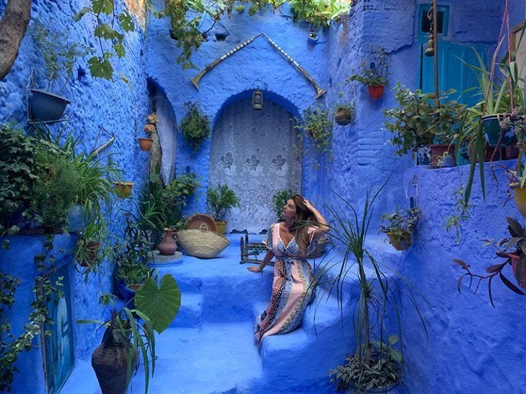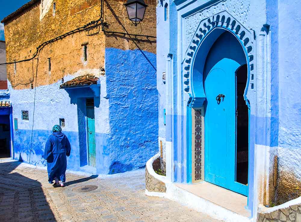 Fachadas azules de Chauen, Marruecos, y Júzcar, España