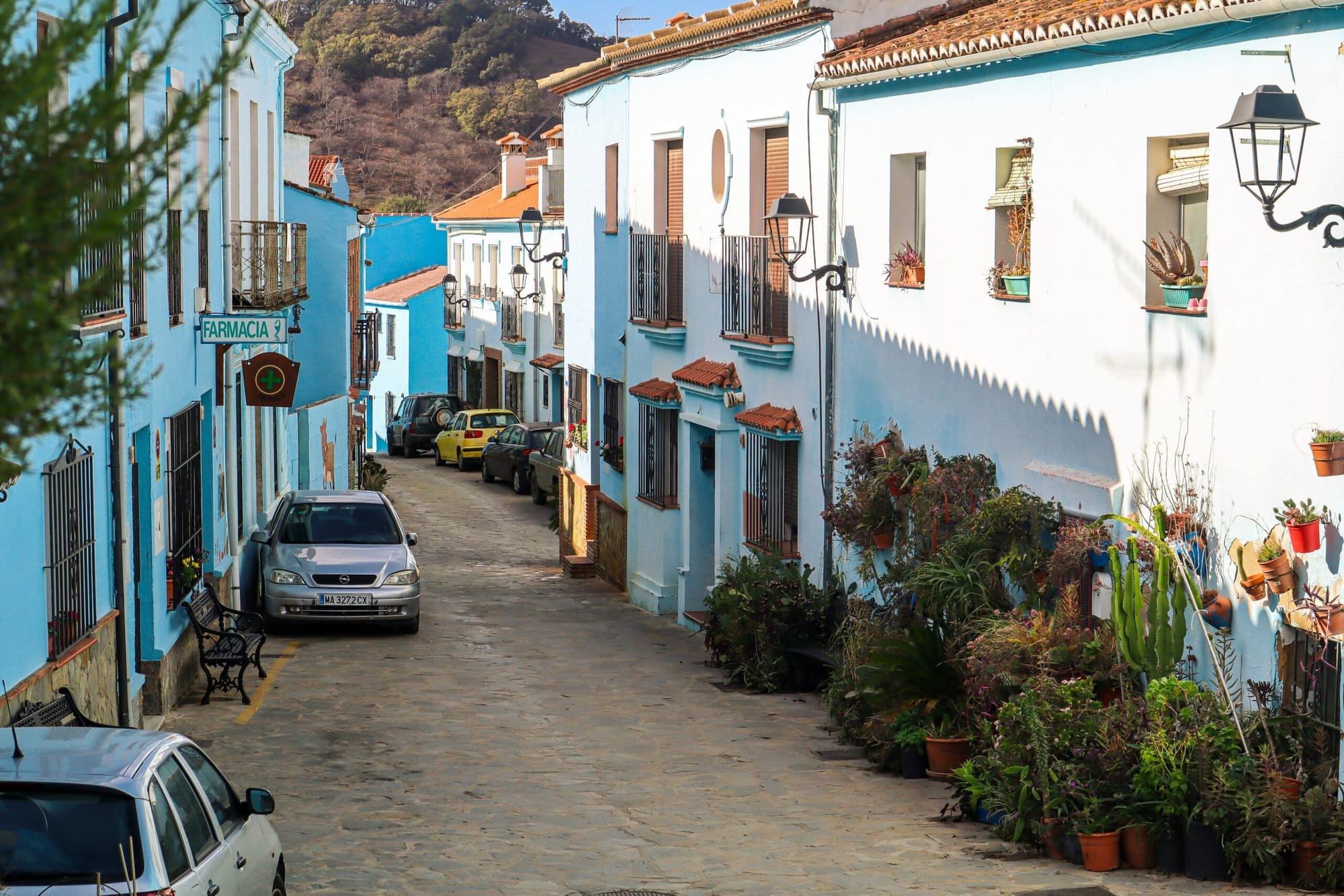 En el interior de Málaga, Júzcar, conocido como el “Pueblo Pitufo”, ofrece una expresión distinta del azul. Su color homogéneo crea un paisaje compacto y vivo que contrasta con la variedad de tonos presentes en Chauen, donde el azul convive con siglos de historia y transformaciones sociales. Mientras el cromatismo de Chauen se integra en una identidad arraigada, el de Júzcar responde a un impulso contemporáneo que ha definido una imagen reconocible dentro de la montaña andaluza. Dos contextos distintos que encuentran en el mismo color una manera de construir carácter y hacer visible su personalidad.