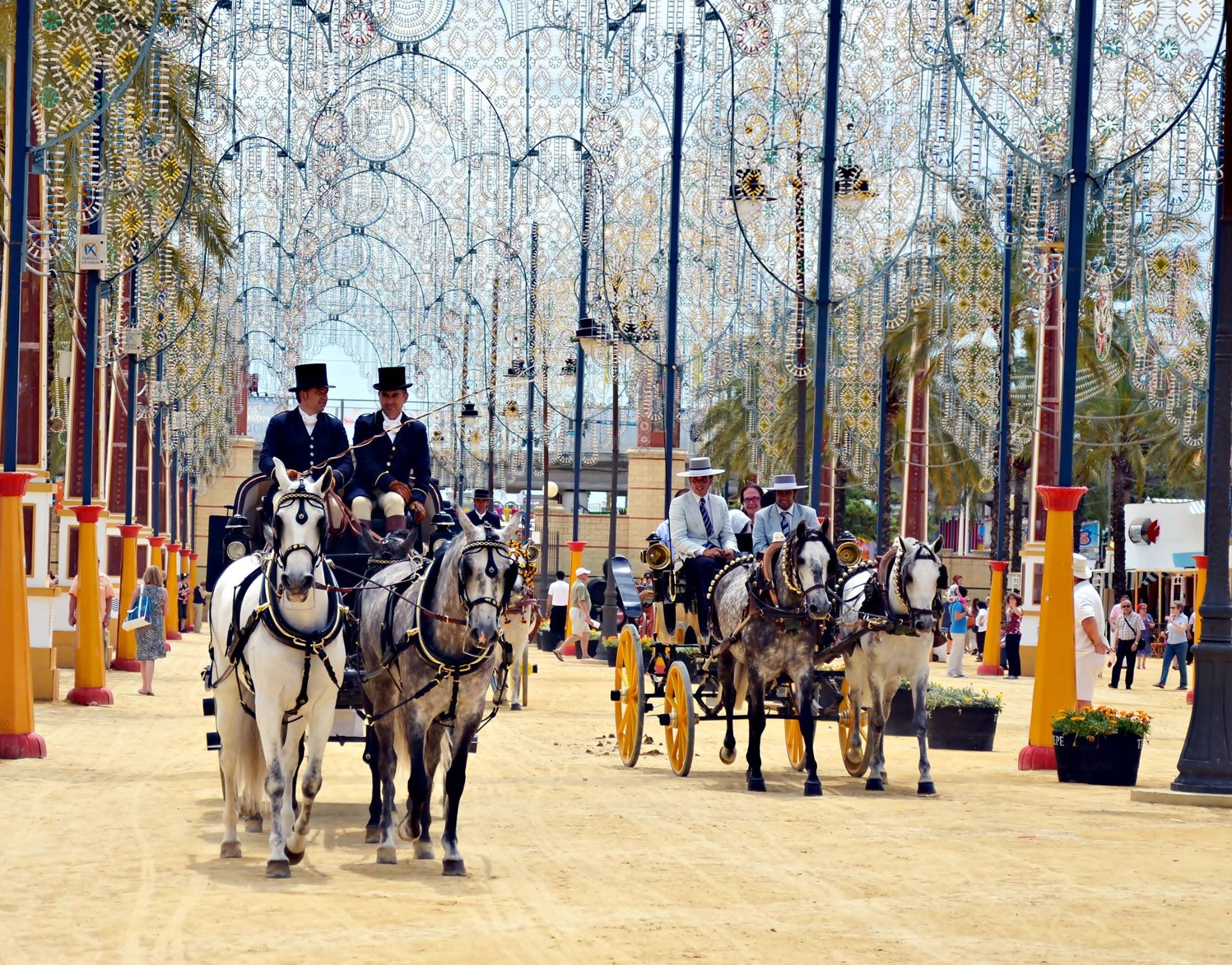 Every year, the Seville Fair transforms the Los Remedios neighbourhood into an ephemeral city built on the same plane for decades. The site is organized as a regular urban layout, with streets, lanterns and facades that only exist for a week. More than a thousand booths (las casetas), most of them private, maintain a common aesthetic inspired by regionalist architecture. Although today it is a social and festive event, its origin was commercial, since it was born in 1847 as a livestock fair promoted by the City Council and local merchants.