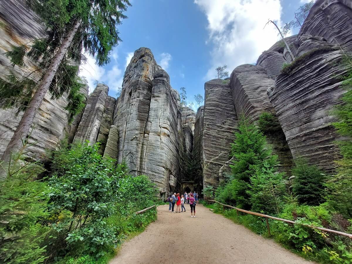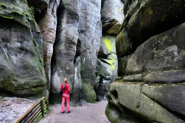 Today, the reserve extends over more than thirteen square kilometers, preserved within the Broumovsko Protected Landscape Area. Among its treasures is the Gothic Gate, built in 1839 by Ludvik Karel Nádherný, along with paths, bridges, and stairs that have become a symbol of the City of Rocks.