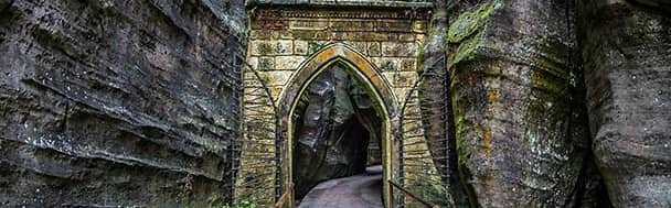 Gothic gate on the rocks of Adršpach-Teplice, Bohemia, Czech Republic