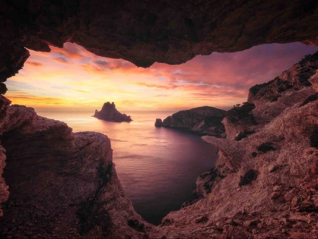 Es Vedrá has fed an endless number of stories. He is nicknamed "the sleeping dragon" because of the silhouette he draws on the horizon. It is also associated with the so-called "triangle of silence", a local myth that emulates the Bermuda Triangle, where it is said that navigation instruments once failed. Added to this are narratives that link the islet with Ulysses and the sirens of "The Odyssey" and with sightings of strange lights recorded since the nineteenth century and revived by the Manises case of 1979. They are legends that are part of the Ibizan imagination and that coexist with the admiration for a place that fascinates travellers and locals. The framing of today's image is enough to appreciate its beauty and understand why this place continues to ignite the imagination of those who contemplate it.
