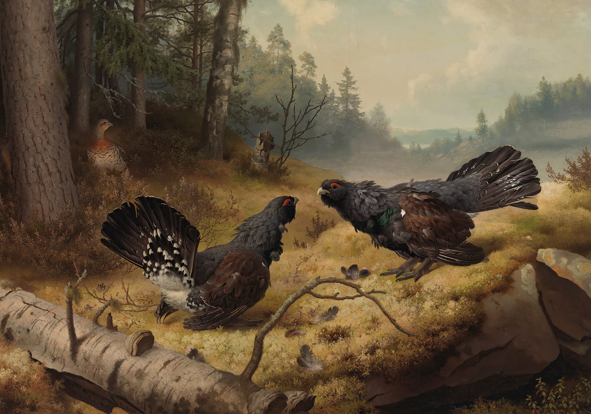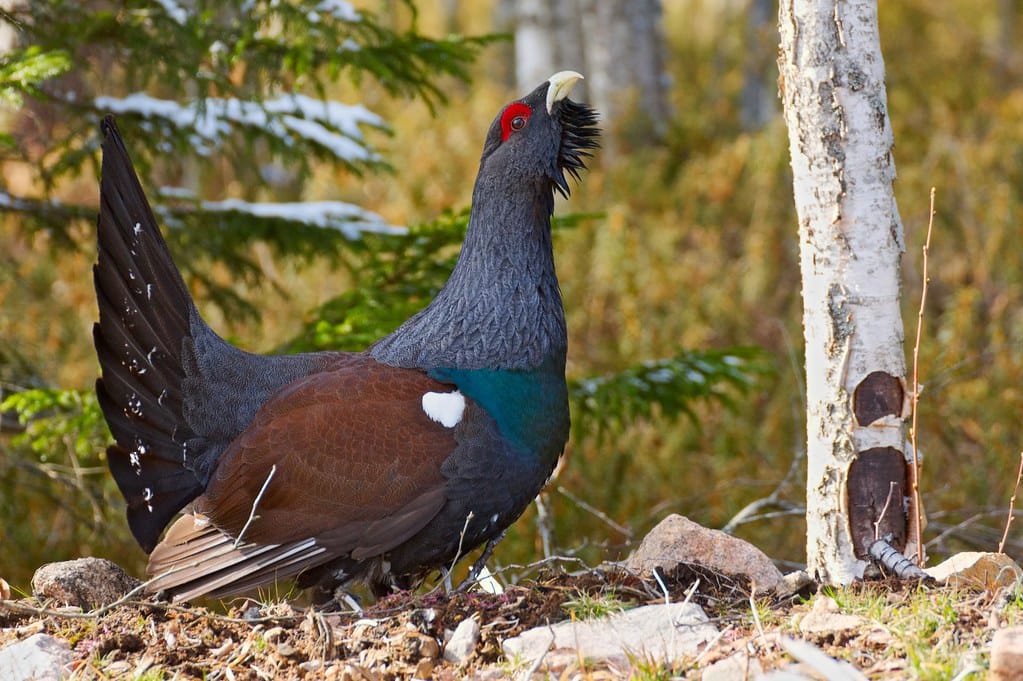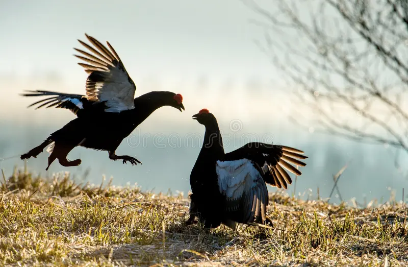 In today's image we see two male black capercaillie facing each other in a forest clearing in Estonia. The scene corresponds to a "lek", the space where these galliformes gather every spring to exhibit themselves during courtship. Males unfurl their plumage, inflate the red caruncles over their eyes, and make characteristic sounds as they measure each other. These confrontations are ritualistic and rarely end in damage, as their main function is to establish hierarchies and demonstrate vigor to the females. Only the most dominant individuals usually manage to reproduce, making these duels a clear example of selection in the wild.