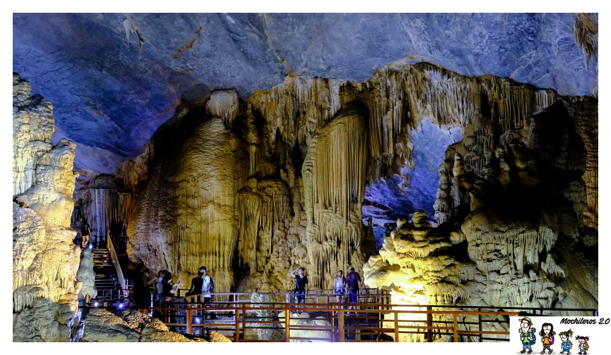 La Gruta de Paraíso se abre en el corazón del Parque Nacional Phong Nha-Kẻ Bàng (Vietnam), como un corredor de luz tenue y silencio mineral. Sus galerías se despliegan con una armonía natural que parece surgida de un sueño antiguo y sereno. Las estalactitas y estalagmitas forman figuras que evocan templos olvidados y paisajes petrificados creados por el tiempo y el agua. La amplitud de algunas cámaras acentúa la sensación de entrar en un mundo aparte donde cada forma cuenta una historia que la naturaleza ha escrito con paciencia infinita. La atmósfera es fresca y envolvente y la luz resalta los matices de piedra que cambian a cada paso.