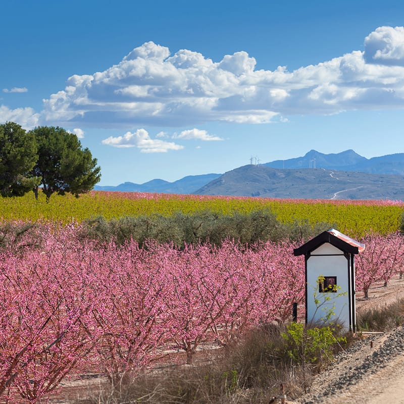 The Flowering in Cieza transforms the Segura valley in Murcia every year into a vibrant setting where the fields are dyed pink and white. The fruit trees wake up with a chromatic explosion that announces the arrival of spring and envelops the landscape in an almost unreal atmosphere. Walking among the trees allows you to feel the fresh scent of the petals and observe how the sunlight enhances the soft tones that characterize this natural celebration.
