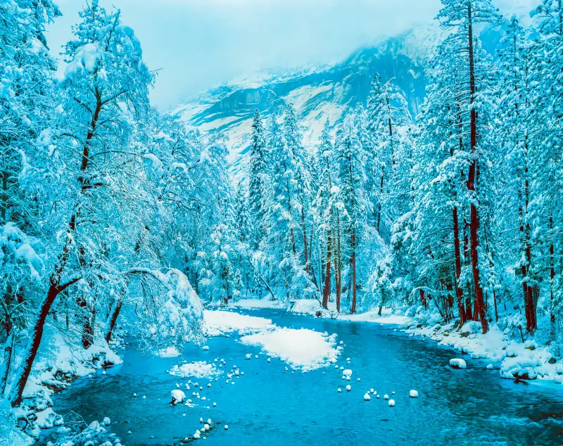 Su nombre original en español, «Río de Nuestra Señora de la Merced», le encaja a la perfección: según la estación, puede ofrecer serenidad o fuerza desbordante. En primavera, el deshielo lo convierte en el gran protagonista del parque, cuando sus aguas pasan bajo puentes de piedra y caen con estruendo por cascadas como Vernal y Nevada. En verano, su caudal más tranquilo invita a remar y a bañarse; en otoño, las orillas se tiñen de dorado; y en invierno, todo se vuelve silencioso.