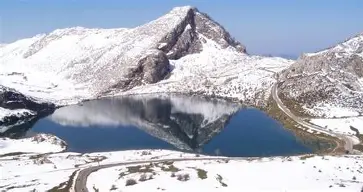 Frente al Lago de Covadonga, esta estampa invernal se vuelve aún más sobrecogedora: la nieve cubre todo a tu alrededor y el paisaje parece un cuadro en el que el tiempo se ha detenido. Sentir cómo la oscuridad va cediendo paso apenas un minuto cada día invita a la reflexión.