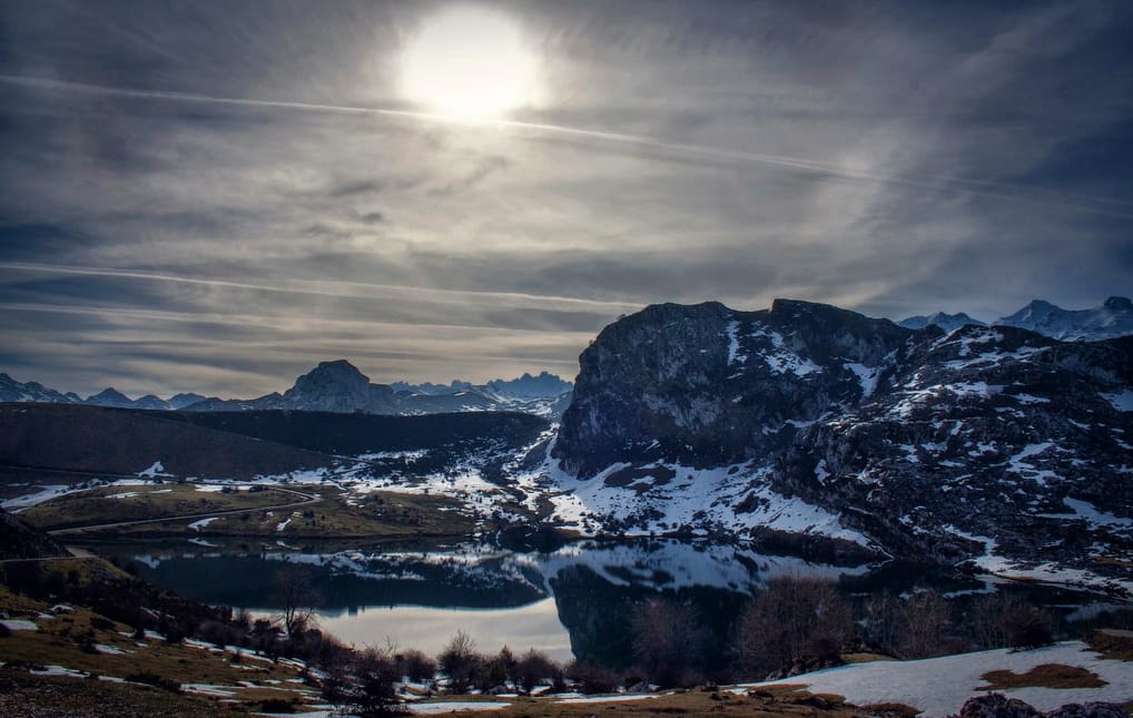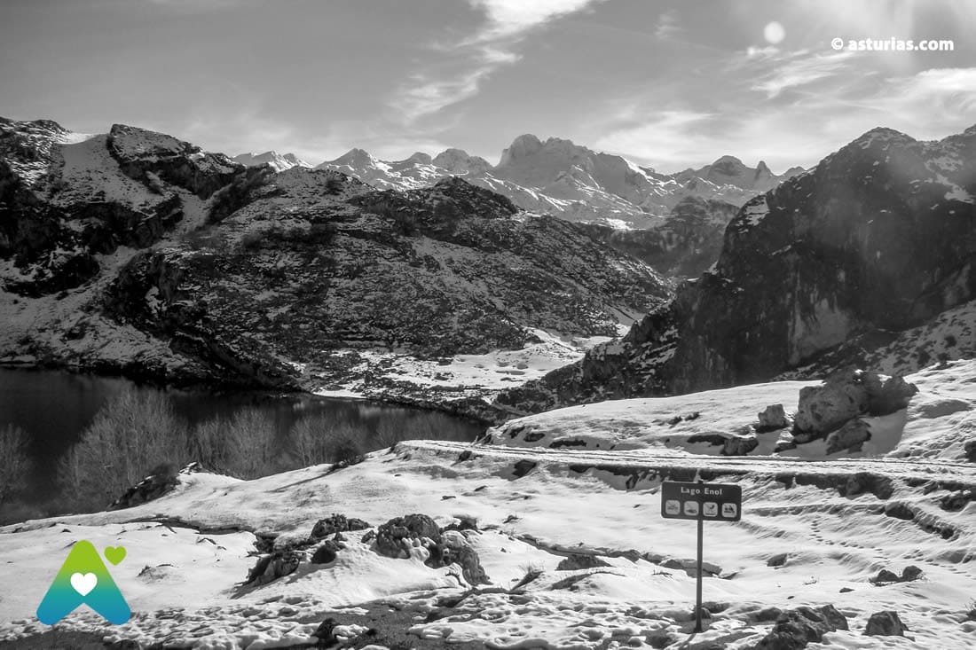 In front of Lake Covadonga, this winter picture becomes even more overwhelming: the snow covers everything around you and the landscape looks like a painting in which time has stopped. Feeling how the darkness is giving way for just one minute each day invites reflection.