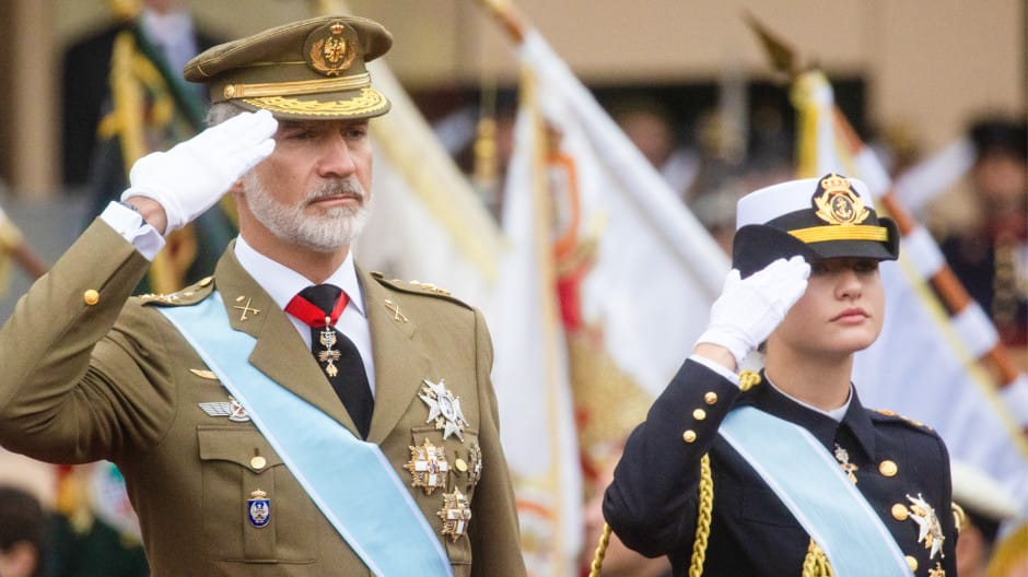 The parade is presided over by the King and Queen of Spain, Felipe VI and Letizia, accompanied by their daughters, Princess Leonor, who usually wears the gala uniform of the Air Force, and the Infanta SofíaEuronews . After the parade, the reception is held at the Royal Palace, an institutional meeting where authorities and political representatives are received, consolidating the as a civil and ceremonial act Euronews.