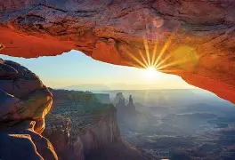 El atardecer en el Parque Nacional de Canyonlands, cerca de Moab, Utah (Estados Unidos), transforma el paisaje en un juego de luces y sombras memorable. El sol desciende sobre un territorio modelado por el río Colorado, resaltando cañones profundos, mesetas y agujas de roca que cambian de color a cada minuto. Los tonos rojos, ocres y dorados se intensifican, mientras el cielo se abre en horizontes amplios y limpios. El silencio del parque y la sensación de inmensidad acompañan el final del día y refuerzan una experiencia serena y envolvente.