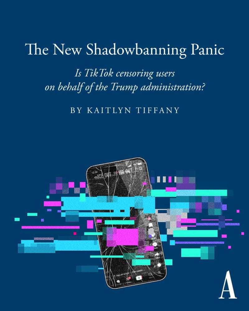“Over the past several days, TikTok users have found themselves at a loss. Literally, I mean: They lost their audiences, and their view counts showed ‘0,’” Tiffany writes. For many, the explanation for the irregularities seemed obvious: “MAGA censorship.” The glitches appeared shortly after the platform’s U.S. business changed hands, spinning off from the Chinese company ByteDance into a new organization that counts among its investors Oracle, which was co-founded by Larry Ellison, a Donald Trump ally. The quirk was bizarre enough that California Governor Gavin Newsom said he would be launching a review “into whether TikTok is violating state law by censoring Trump-critical content.”In an email to Tiffany, a spokesperson said that the app is being run as it was before, and that American users will “continue to have the same experience they already know and love.” The company has blamed the issues on a power outage at one of its data centers, which it said caused a “cascading” systems failure affecting all types of content.“Unsurprisingly, a lot of people are not totally buying the explanation,” Tiffany writes. Trump has joked that he would make the app’s algorithm “100 percent MAGA” if he could, and during a moment when Americans are looking to their phones for up-to-date and on-the-ground information on events happening in Minnesota and elsewhere, “any whisper of intervention or suppression is natural cause for concern.”We are now “in a counterintuitive and paradoxical stage of content moderation, where some spaces are more chaotic than ever and others are more restricted in highly specific ways,” Tiffany continues. But the debate over how much social media influences what users see “is unresolvable, because users have no objective way to assuage their own doubt or confirm their own fears.”🎨: