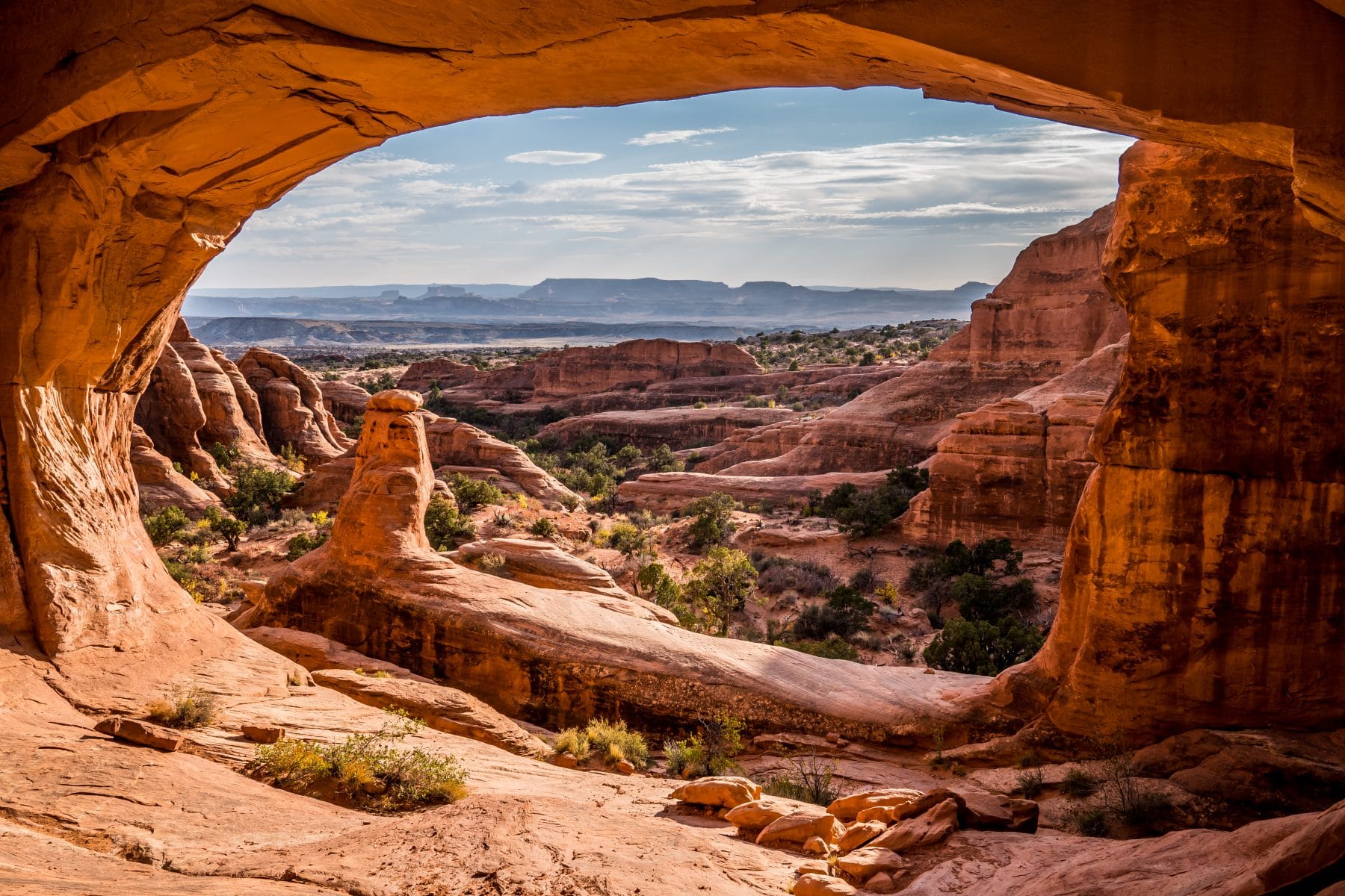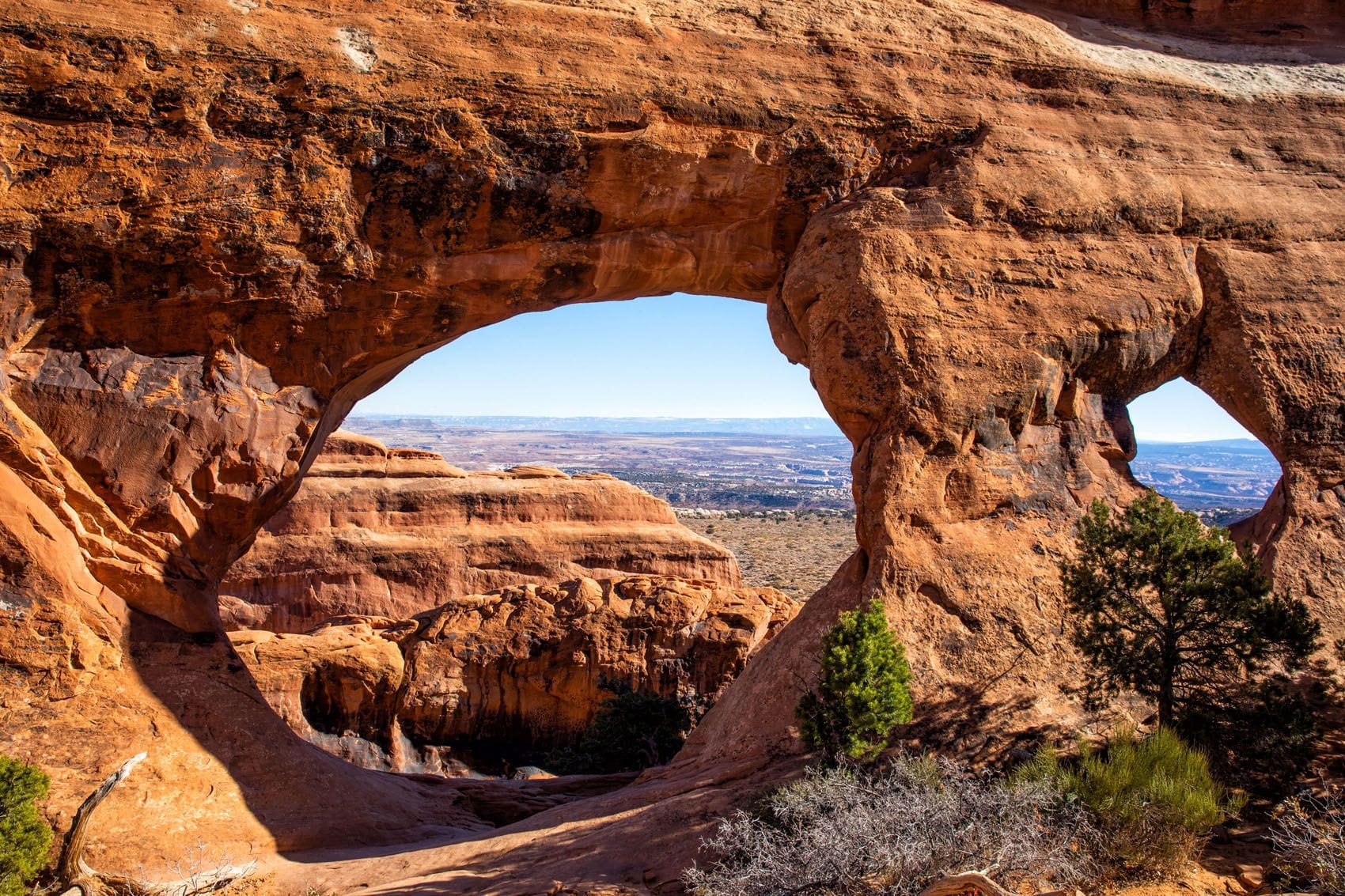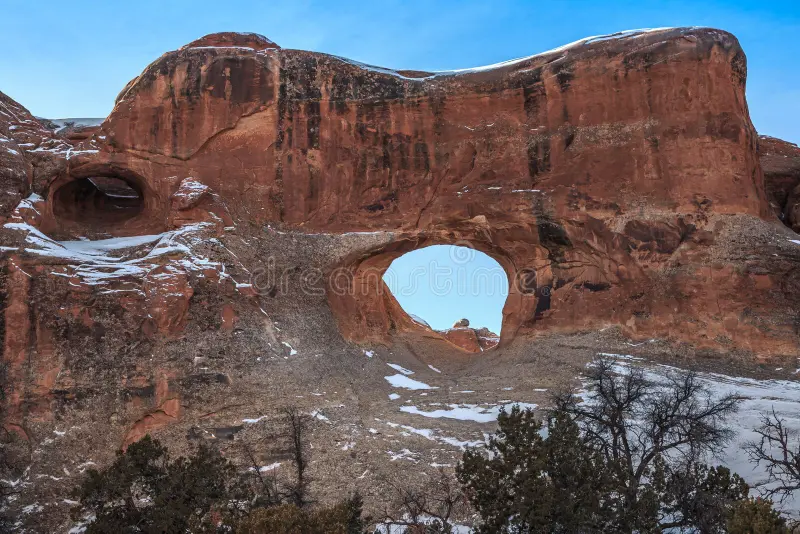Today's image shows one of the most iconic landscapes of the American Southwest: the Turret Arch framed by the North Window in Los Arcos National Park in Utah (United States). This park is home to more than 2,000 natural arches formed by wind and water erosion on the sandstone rock over millions of years. The Turret Arch, with its stylized shape, and the North Window, which frames it as if it were a natural painting, are two of the most photographed formations in the park. Most of these arches are fragile and continue to change over time; some even collapse, as happened with the famous Wall Arch in 2008. In addition, the park offers spectacular night skies, ideal for stargazing, as it is located in an area with very little light pollution.