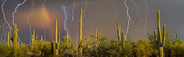 In questo contesto, l'immagine del giorno ci colloca nel deserto di Sonora in Arizona (Stati Uniti), dove un temporale illumina la notte sopra gli imponenti cactus saguaro. La scena mostra l'energia dell'atmosfera e la forza imprevedibile con cui il tempo trasforma il paesaggio.